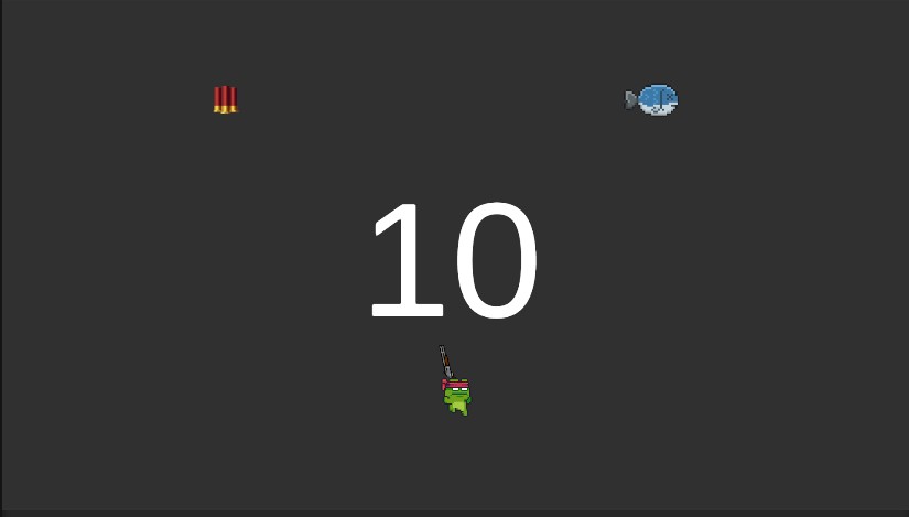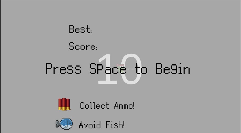 Try to survive as long as possible by collecting ammo and avoiding the fish ----------------------------------------------------------------------------------------------------------
